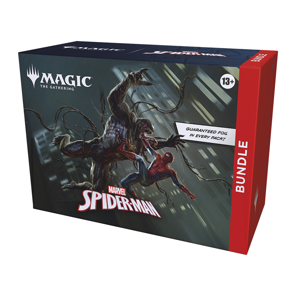 The Bundle is a great gift for Spider-Man superfans and newcomers alike who visit your store. They contain a little bit of everything to get a player's collection off the ground, plus an oversized Spindown life counter themed after the set.